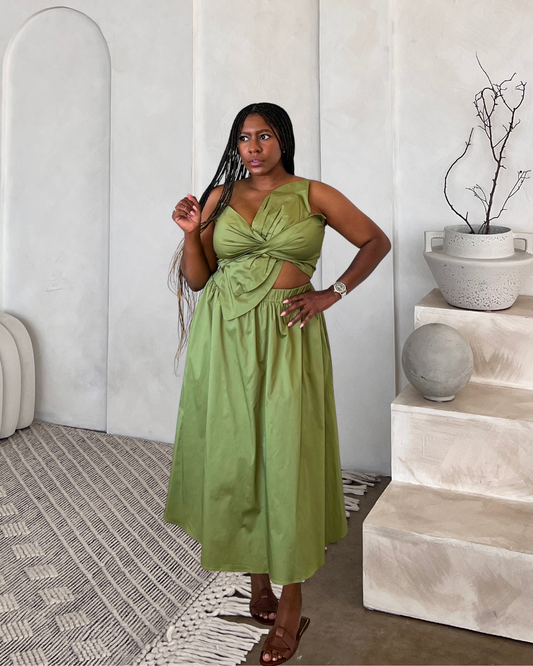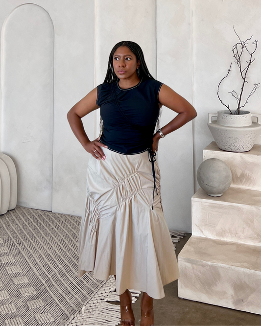 Ruched Asymmetric 2-Piece Set – Top & Midi Skirt